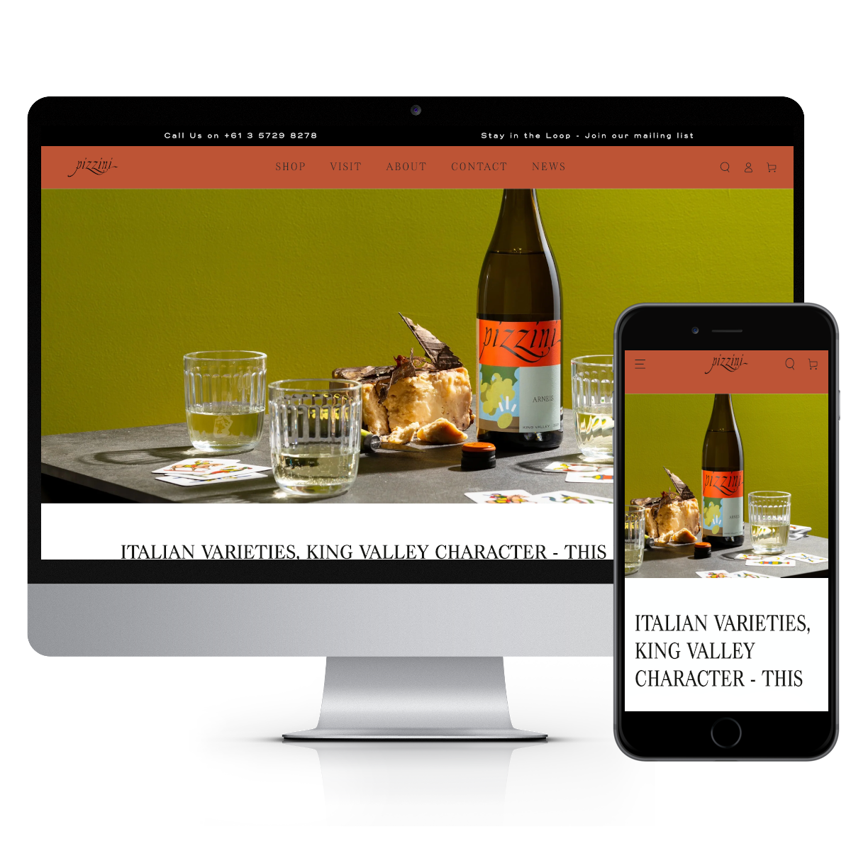 Pizzini are well known in the wine world for their wide variety of reds, whites and roses. With an existing Shopify store that was built many years ago they needed a new design to match the new branding of their range.